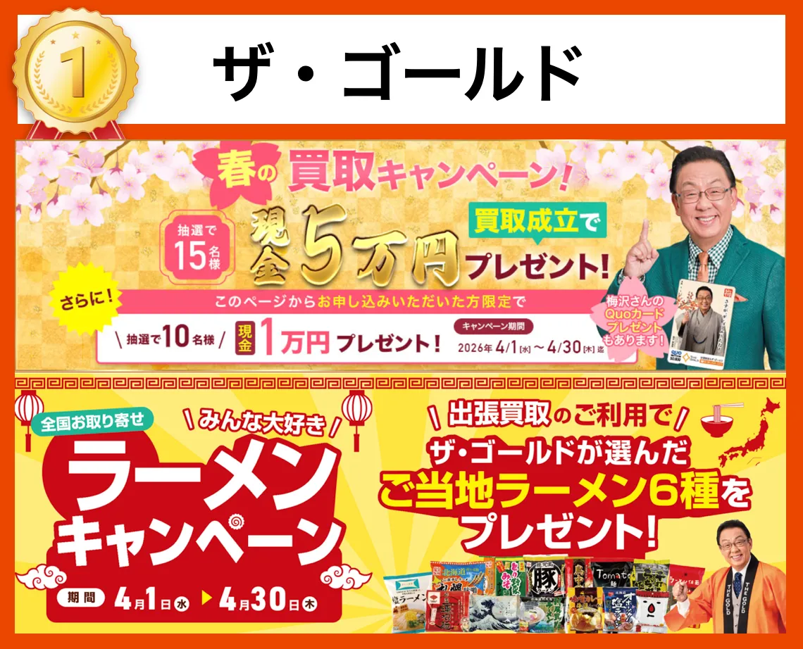 | 総合評価 | ![]() ![]() ザ・ゴールド | ![]() ![]() 福ちゃん | ![]() ![]() バイセル |